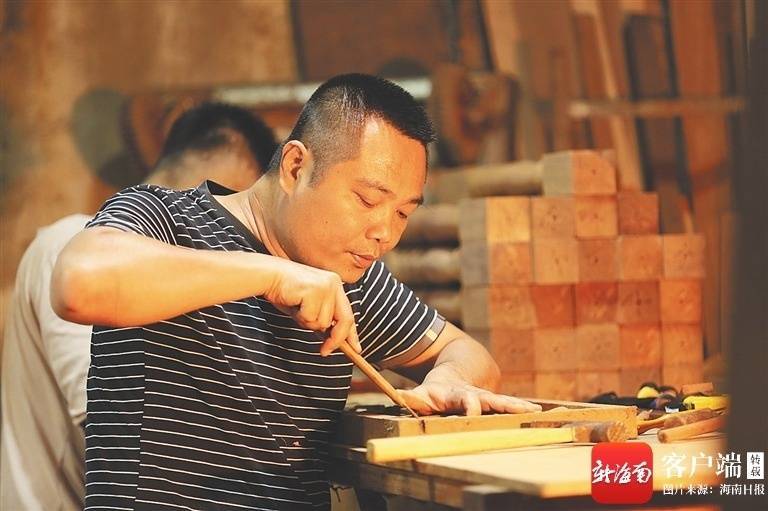r临近年底,在万宁市万城镇的金龙木雕工艺厂比往常安静了许多。43岁的黄冠智是这里的负责人,也是一名“南海工匠”。此刻,他正忙着最近一批作品的组装工作。“接下来主要就是安装,一直要忙到过年了。”黄冠智介绍。